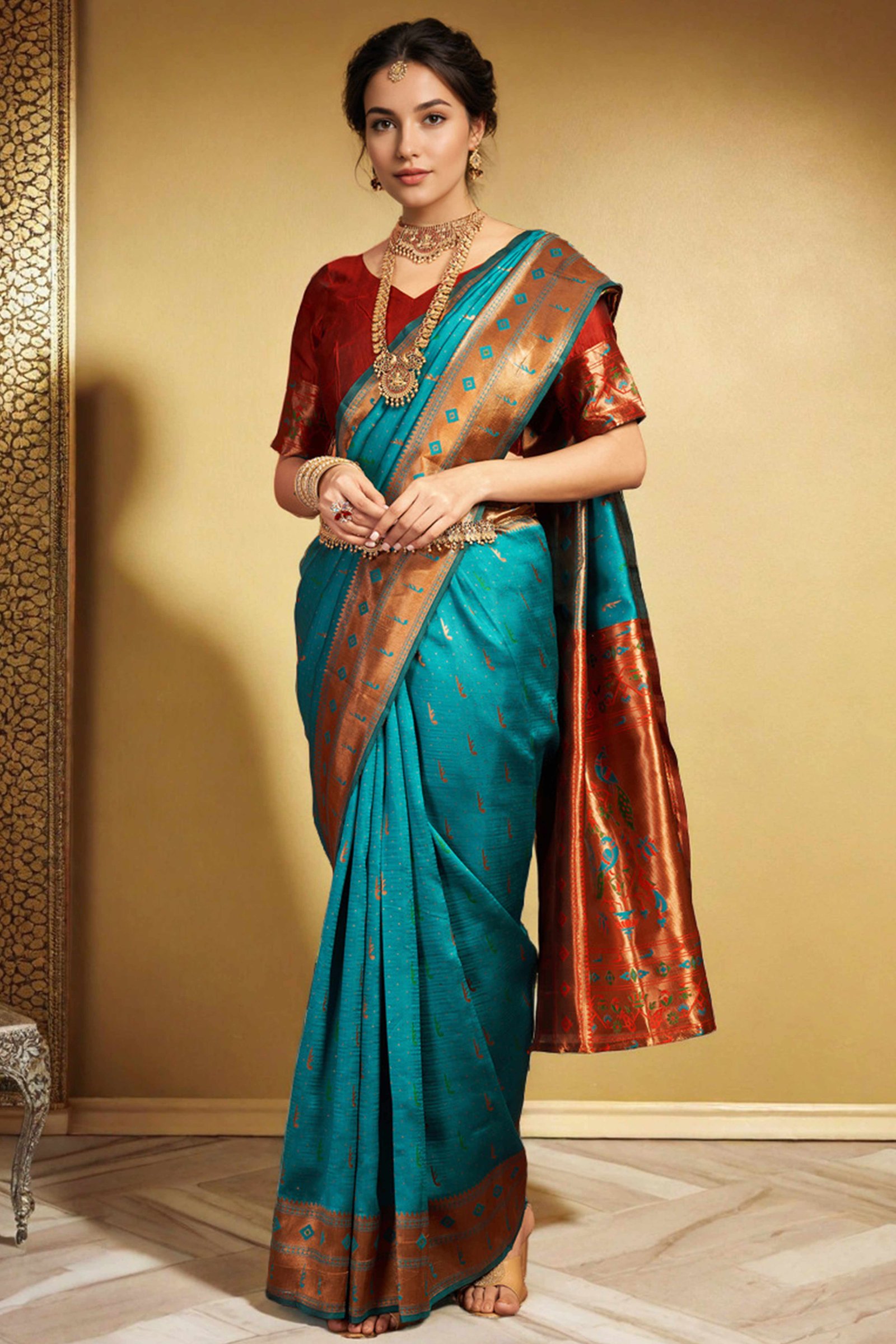Embroidered SareeSee All -54% Add to cart Wishlist Compare Quick view Yellow Floral Embroidered Chiffon Saree ₹3,899.00 Original price was: ₹3,899.00.₹1,800.00Current price is: ₹1,800.00. -68% Add to cart Wishlist Compare Quick view Yellow Faux Georgette Saree Featuring Minimalist Floral Border Embroidery ₹3,299.00 Original price was: ₹3,299.00.₹1,050.00Current price is: ₹1,050.00. -64% Add to cart Wishlist Compare Quick view Yellow Cording Sequins Embroidery With Bandhani Print Art Silk Saree ₹2,799.00 Original price was: ₹2,799.00.₹1,000.00Current price is: ₹1,000.00. -50% Add to cart Wishlist Compare Quick view Wine Floral Embroidered Georgette Saree ₹1,999.00 Original price was: ₹1,999.00.₹1,000.00Current price is: ₹1,000.00. -55% Add to cart Wishlist Compare Quick view Wine Jimmy Choo Chiffon Saree Adorned with Delicate Floral Sequins Embroidery ₹3,999.00 Original price was: ₹3,999.00.₹1,800.00Current price is: ₹1,800.00. -60% Add to cart Wishlist Compare Quick view Wine Zari Embroidered Saree In Vichitra Silk With Shimmering Floral Sequins Work ₹2,999.00 Original price was: ₹2,999.00.₹1,200.00Current price is: ₹1,200.00. -62% Add to cart Wishlist Compare Quick view Wine Crunchy Organza Silk Saree Adorned With Intricate Floral Sequins Embroidery ₹3,999.00 Original price was: ₹3,999.00.₹1,500.00Current price is: ₹1,500.00. -59% Add to cart Wishlist Compare Quick view White Saree in Sheer Kota Doria Fabric with Floral Patterns and Intricate Embroidery ₹2,899.00 Original price was: ₹2,899.00.₹1,200.00Current price is: ₹1,200.00. -59% Add to cart Wishlist Compare Quick view White Zari Embroidered Vichitra Silk Saree ₹2,899.00 Original price was: ₹2,899.00.₹1,200.00Current price is: ₹1,200.00. -67% Add to cart Wishlist Compare Quick view White Pure Linen Saree with Floral Embroidery and Tassel Detailing ₹3,000.00 Original price was: ₹3,000.00.₹1,000.00Current price is: ₹1,000.00. -35% Add to cart Wishlist Compare Quick view White Embroidered Cotton Silk Saree with Subtle Sequins Detailing ₹4,599.00 Original price was: ₹4,599.00.₹3,000.00Current price is: ₹3,000.00. -68% Add to cart Wishlist Compare Quick view White Faux Georgette Saree Featuring Minimalist Floral Border Embroidery ₹3,299.00 Original price was: ₹3,299.00.₹1,050.00Current price is: ₹1,050.00. -55% Add to cart Wishlist Compare Quick view White Floral Embroidered Art Silk Saree ₹2,199.00 Original price was: ₹2,199.00.₹1,000.00Current price is: ₹1,000.00. -50% Add to cart Wishlist Compare Quick view White & Wine Partywear Georgette Saree with Delicate Stone & Bead Work ₹2,999.00 Original price was: ₹2,999.00.₹1,500.00Current price is: ₹1,500.00. -50% Add to cart Wishlist Compare Quick view White & Pink Partywear Georgette Saree with Delicate Stone & Bead Work ₹2,999.00 Original price was: ₹2,999.00.₹1,500.00Current price is: ₹1,500.00. -50% Add to cart Wishlist Compare Quick view White & Green Partywear Georgette Saree with Delicate Stone & Bead Work ₹2,999.00 Original price was: ₹2,999.00.₹1,500.00Current price is: ₹1,500.00. -57% Add to cart Wishlist Compare Quick view Violet Georgette Saree with Sleek Solid Finish and Embroidered Edging ₹2,999.00 Original price was: ₹2,999.00.₹1,290.00Current price is: ₹1,290.00. -47% Add to cart Wishlist Compare Quick view Turquoise Dola Silk Saree With Abstract Patterns And Kalamkari Pallu Art ₹1,899.00 Original price was: ₹1,899.00.₹1,009.00Current price is: ₹1,009.00. -50% Add to cart Wishlist Compare Quick view Teal Sequins Embroidered Georgette Saree ₹3,599.00 Original price was: ₹3,599.00.₹1,800.00Current price is: ₹1,800.00. -50% Add to cart Wishlist Compare Quick view Teal Net Saree With Floral Thread Embroidery Adorned In Stone & Mirror Accents ₹4,999.00 Original price was: ₹4,999.00.₹2,500.00Current price is: ₹2,500.00. -55% Add to cart Wishlist Compare Quick view Teal Jimmy Choo Chiffon Saree Adorned with Delicate Floral Sequins Embroidery ₹3,999.00 Original price was: ₹3,999.00.₹1,800.00Current price is: ₹1,800.00. -59% Add to cart Wishlist Compare Quick view Teal Festive Wear Silk Blend Saree with Embroidery & Stones ₹4,399.00 Original price was: ₹4,399.00.₹1,800.00Current price is: ₹1,800.00. -37% Add to cart Wishlist Compare Quick view Teal Georgette Saree Featuring Embroidered and Stone Work ₹4,799.00 Original price was: ₹4,799.00.₹3,000.00Current price is: ₹3,000.00. -47% Add to cart Wishlist Compare Quick view Teal Dola Silk Saree With Abstract Patterns And Kalamkari Pallu Art ₹1,899.00 Original price was: ₹1,899.00.₹1,009.00Current price is: ₹1,009.00. -69% Add to cart Wishlist Compare Quick view Royal Purple Chinon Saree Adorned With Zari Floral Embroidery & Gleaming Sequins Work ₹3,399.00 Original price was: ₹3,399.00.₹1,050.00Current price is: ₹1,050.00. -32% Add to cart Wishlist Compare Quick view Rust Partywear Chiffon Saree with Ornate Border Detailing ₹22,000.00 Original price was: ₹22,000.00.₹15,000.00Current price is: ₹15,000.00. -61% Add to cart Wishlist Compare Quick view Rose Pink Ombre Chinon Saree With Mirror Border ₹3,299.00 Original price was: ₹3,299.00.₹1,300.00Current price is: ₹1,300.00. -61% Add to cart Wishlist Compare Quick view Rose Pink Satin Saree with Artistic Floral Embroidery and Soft Resham Detailing ₹3,799.00 Original price was: ₹3,799.00.₹1,500.00Current price is: ₹1,500.00. See All Paithani Saree -21% Add to cart Wishlist Compare Quick view Yellow Woven Tissue Paithani Saree With Tassels ₹18,999.00 Original price was: ₹18,999.00.₹15,000.00Current price is: ₹15,000.00. -24% Add to cart Wishlist Compare Quick view Yellow Woven Art Silk Paithani Saree With Tassels ₹5,249.00 Original price was: ₹5,249.00.₹4,000.00Current price is: ₹4,000.00. -24% Add to cart Wishlist Compare Quick view Yellow Woven Art Silk