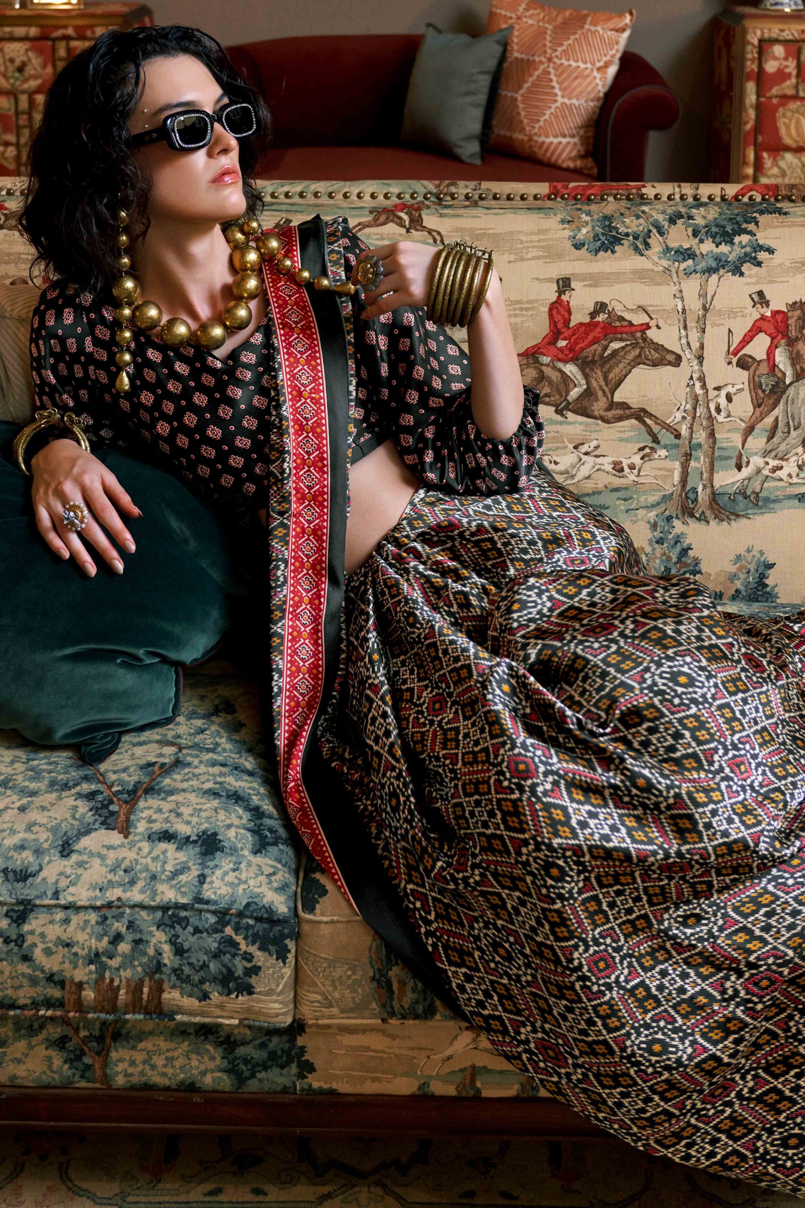 Black colored saree is made from satin crepe fabric which is highlighted with beautiful patola print as shown. Comes along with unstitched satin blouse piece which you can customize as per your design/style. Occasion – You can wear this saree for casual and others. Note:- the actual product may differ slightly in color and design from the one illustrated in the images when compared with computer or mobile screen.