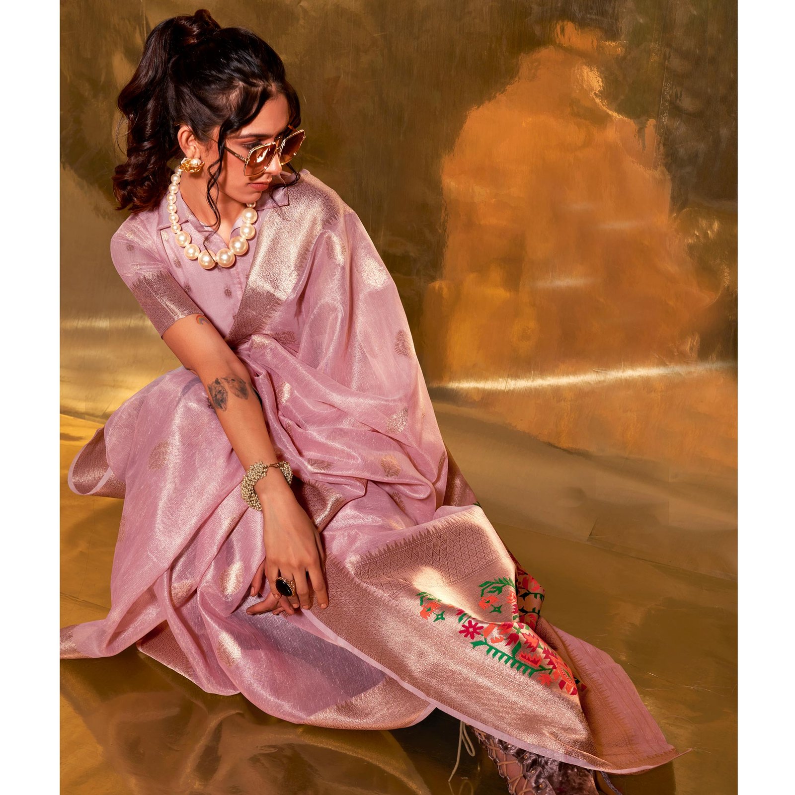 Be the first to review “Pink Woven Tissue Paithani Saree”