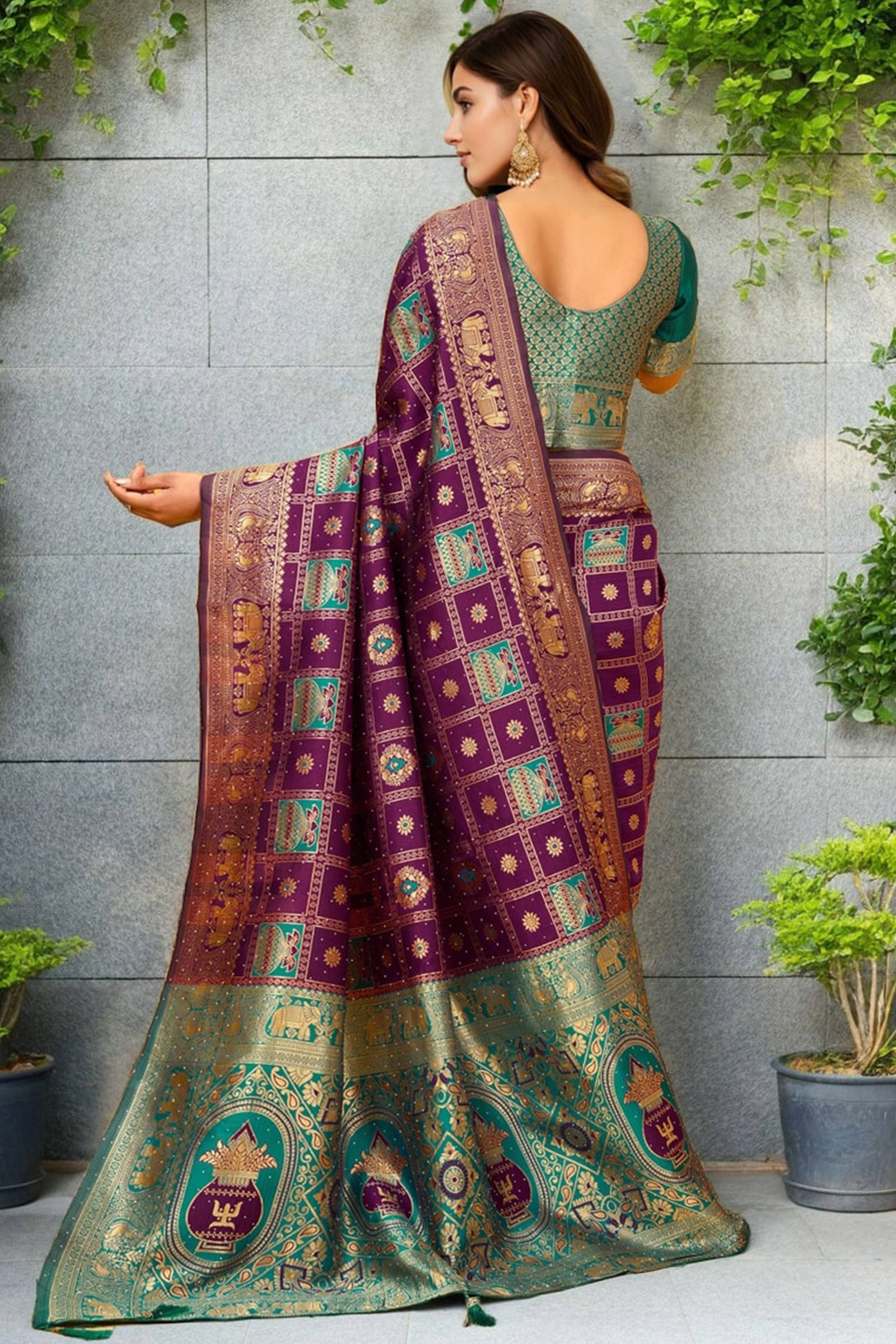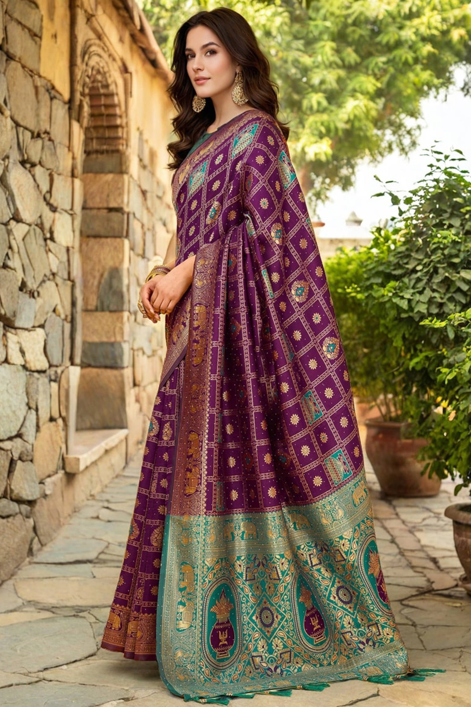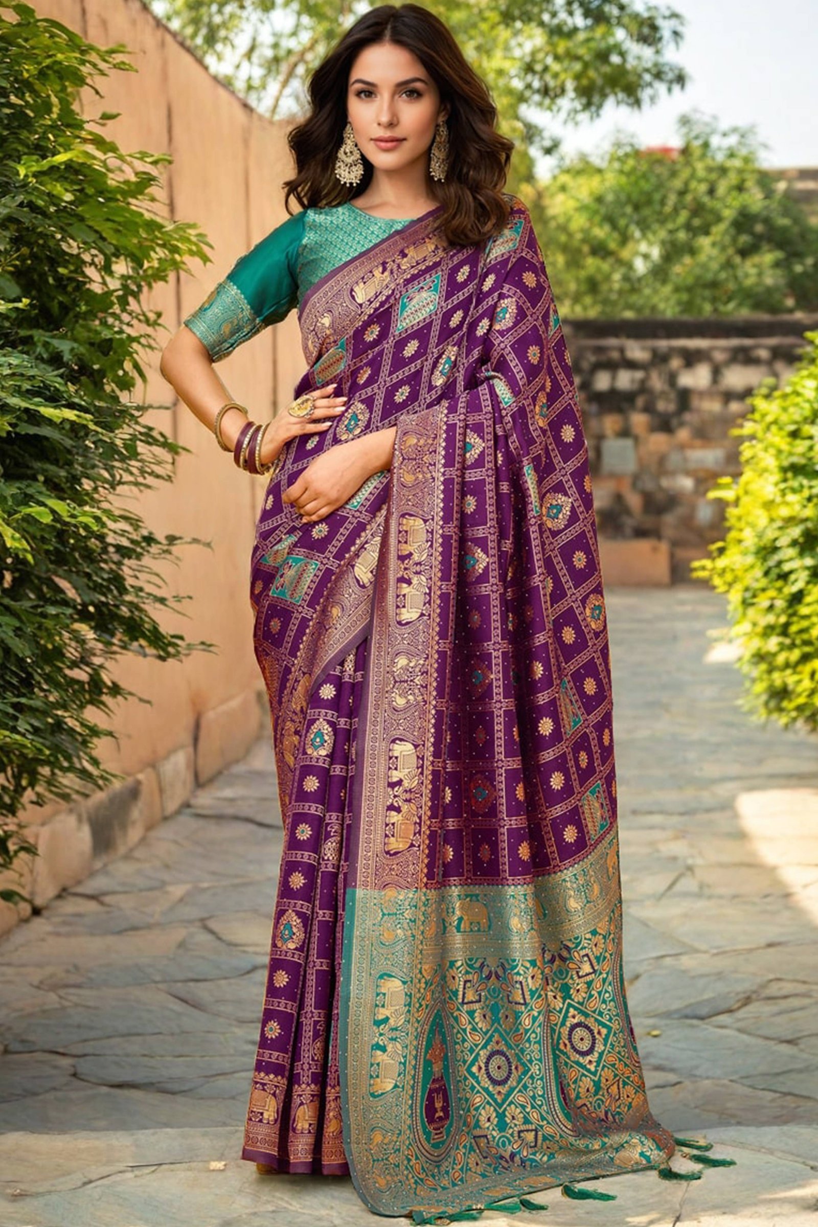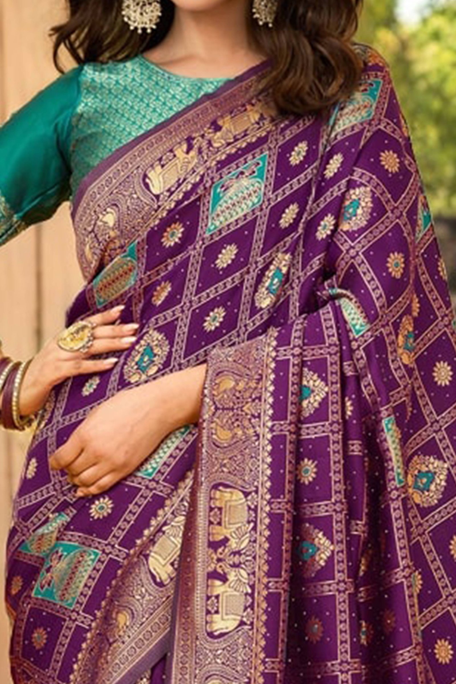 - Elegant Appeal: Add a touch of grace to your ethnic collection with this captivating purple paithani saree, featuring intricate zari weaving and a tasselled pallu. Blending timeless tradition with contemporary charm, it’s perfect for making a regal statement at festive gatherings.