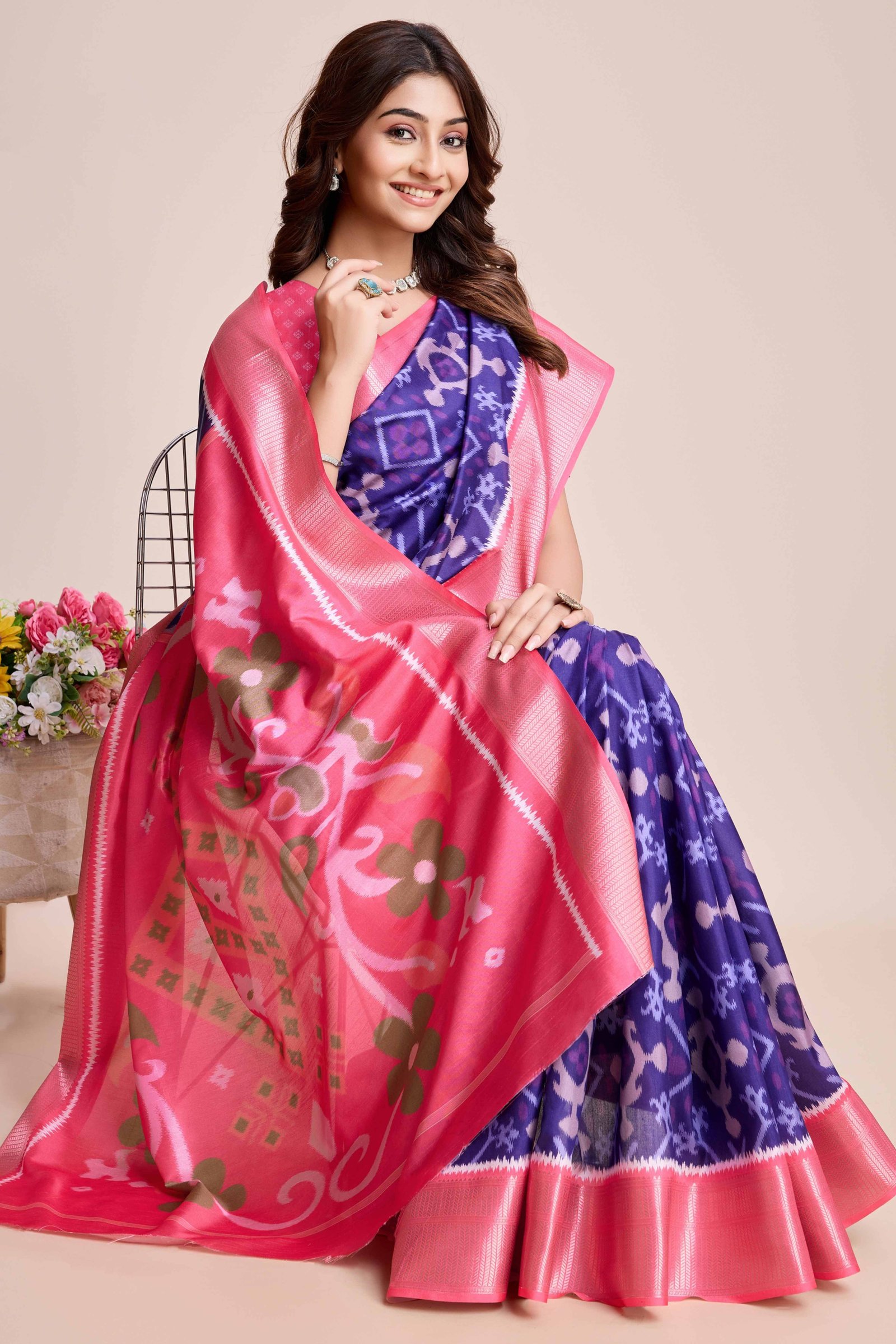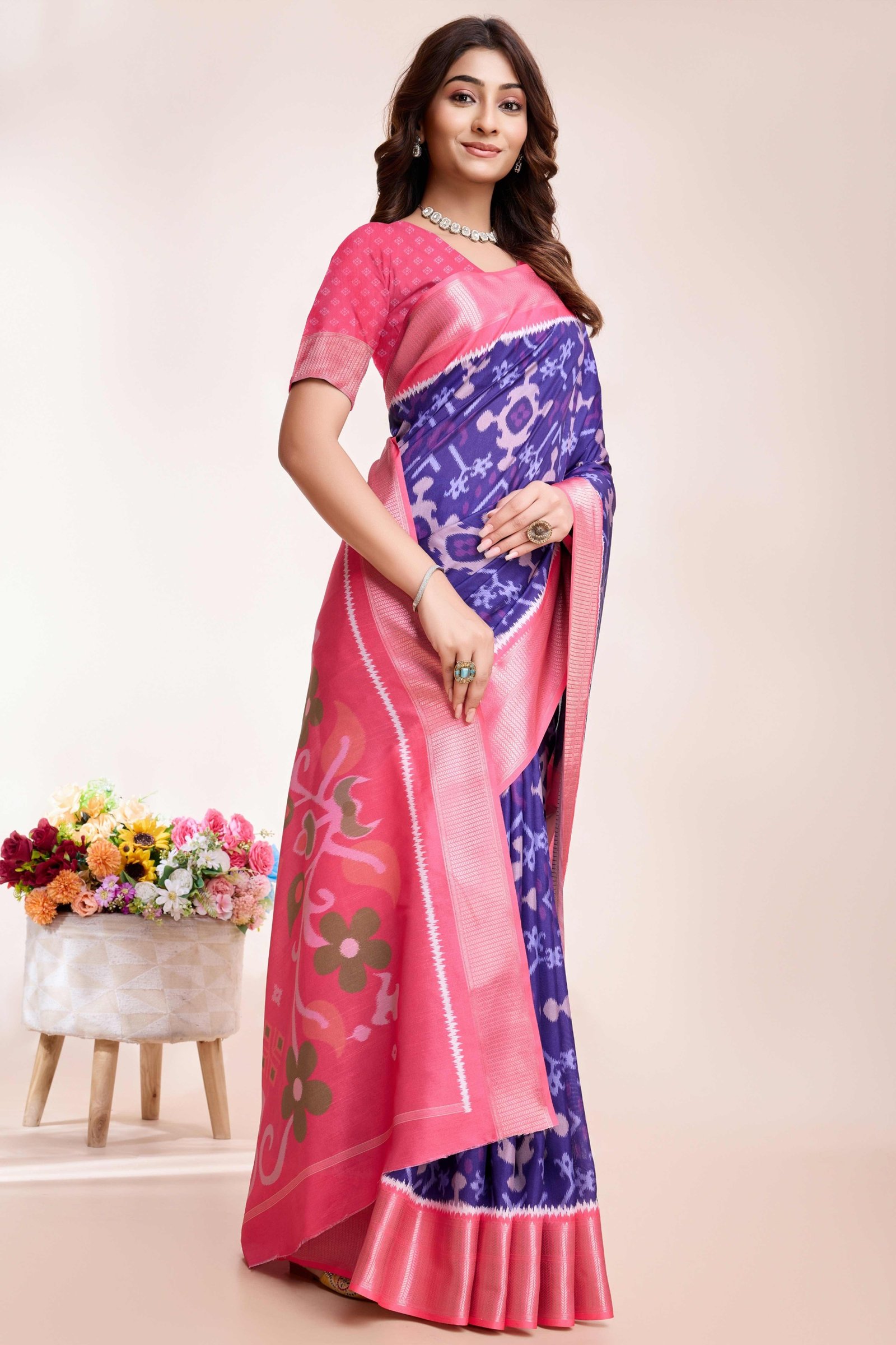 Be the first to review “Violet Patola Printed Dola Silk Saree”