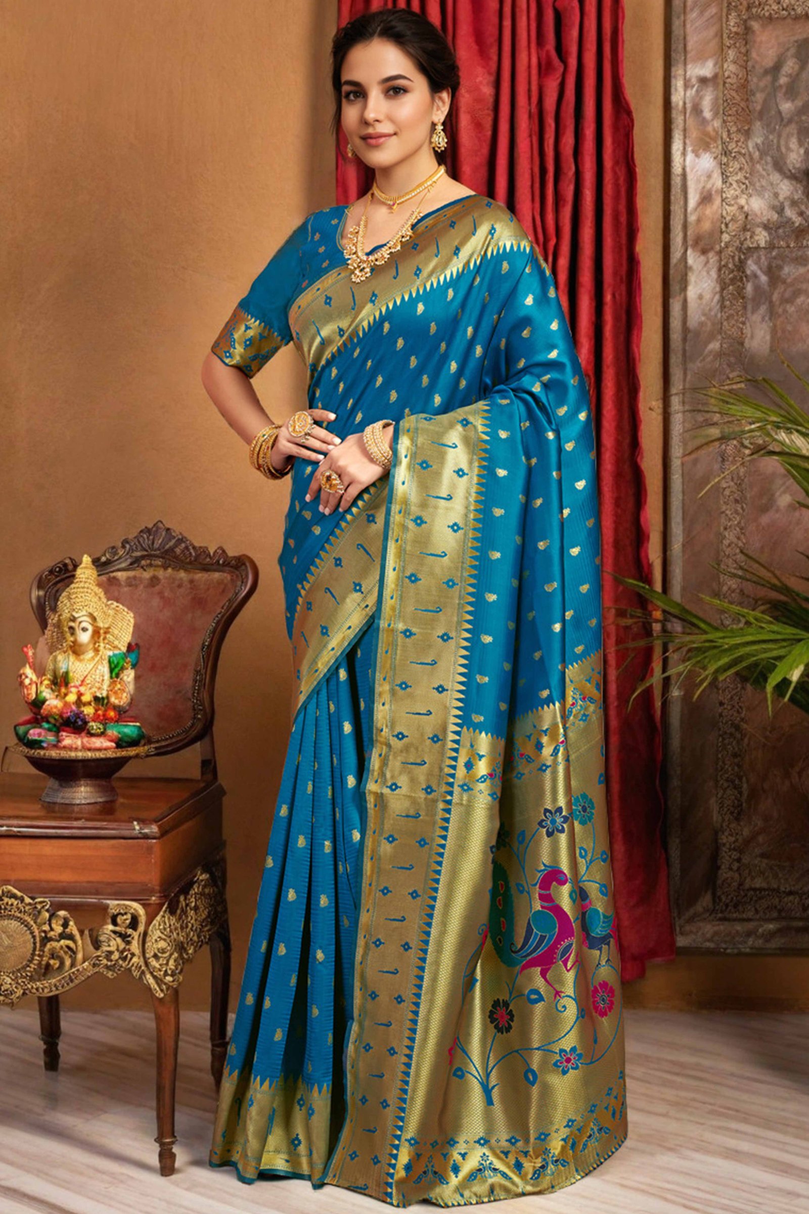 White colored style saree is made from vichitra silk fabric which is highlighted zari embroidery as shown. comes along unstitched vichitra silk blouse piece which you can customize as per your design/style. Occasion – You can wear this saree for festive and functions.