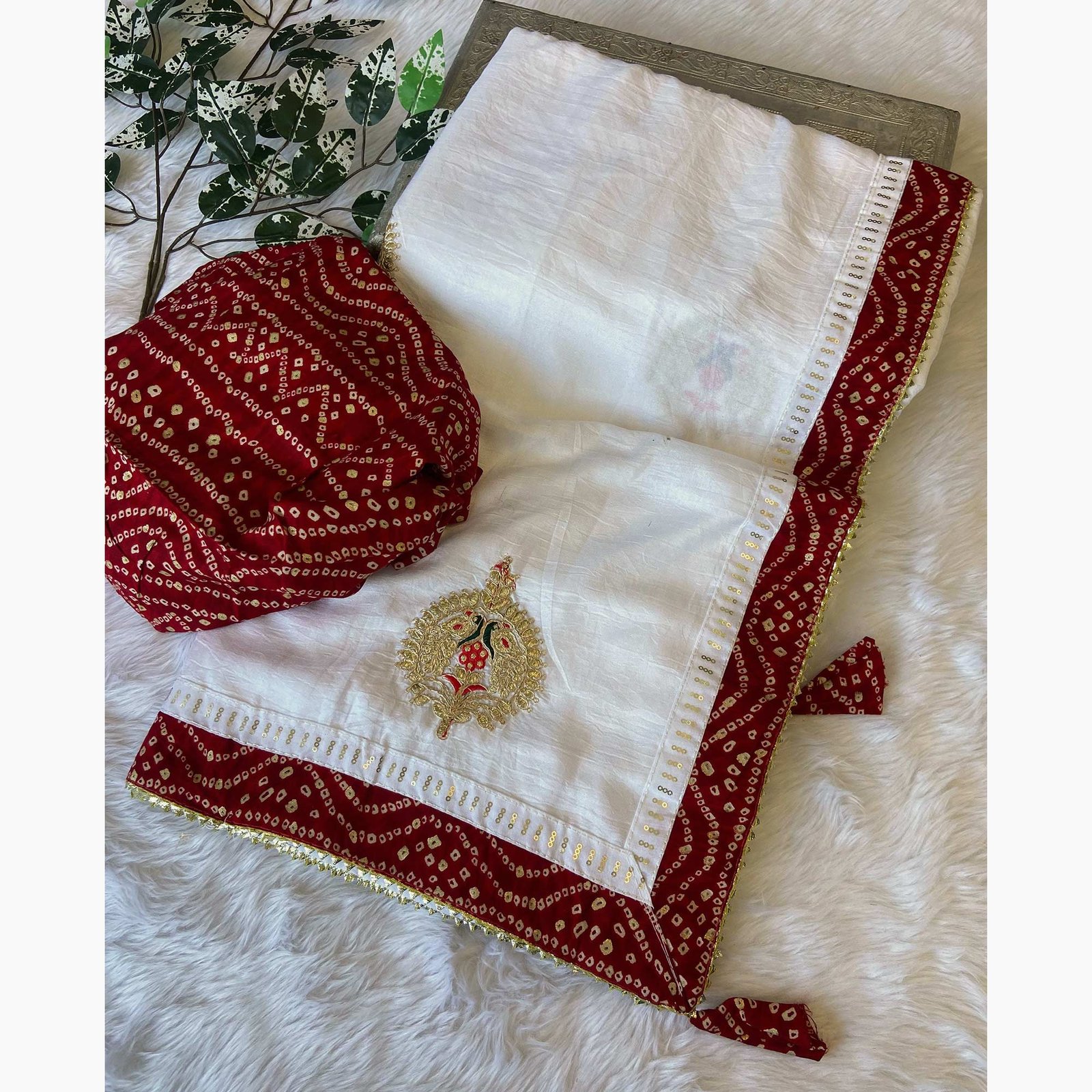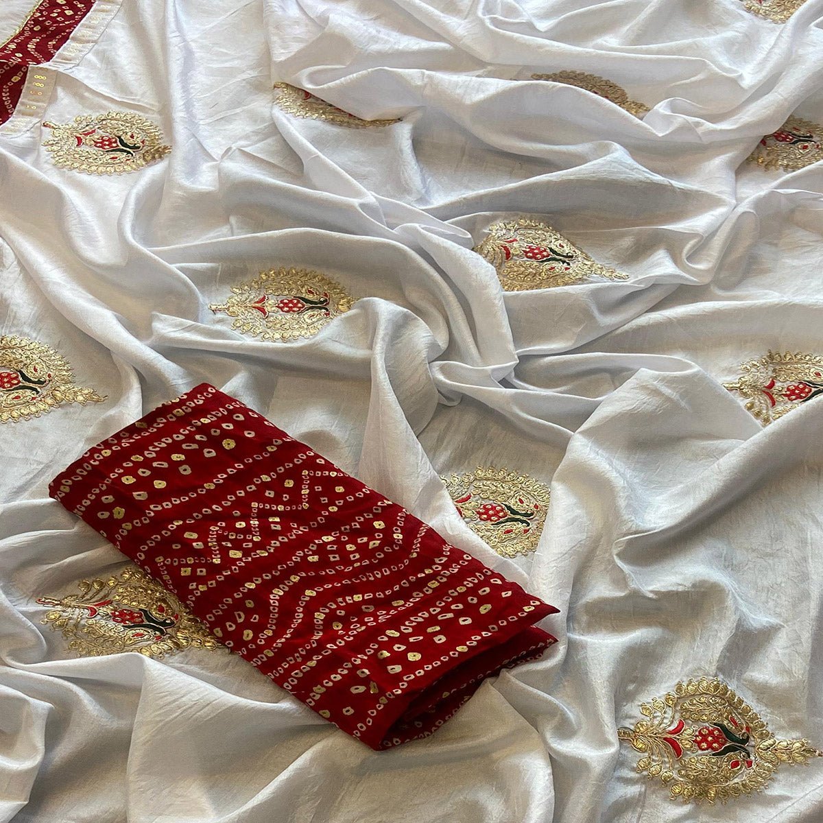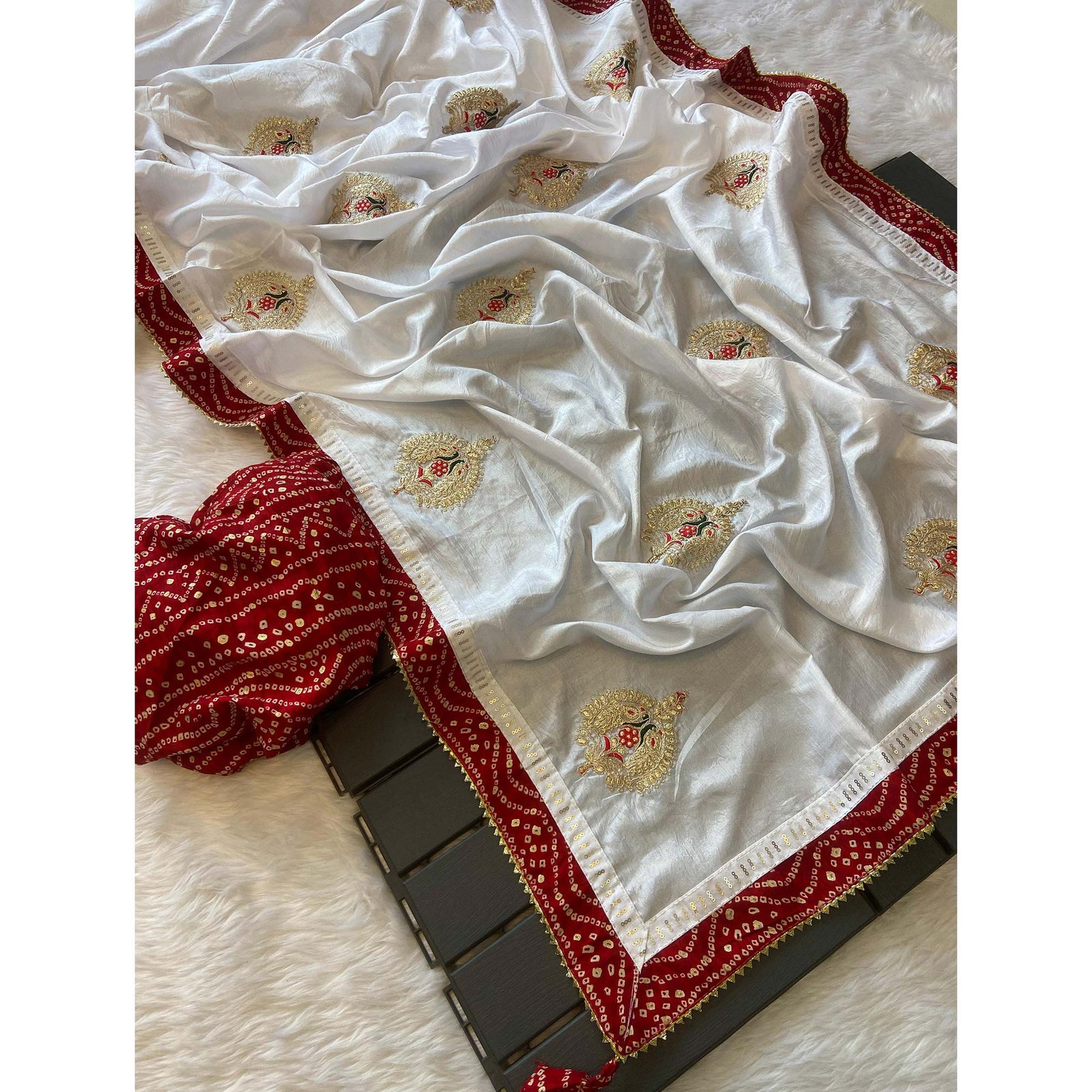 Be the first to review “White Zari Embroidered Vichitra Silk Saree”
