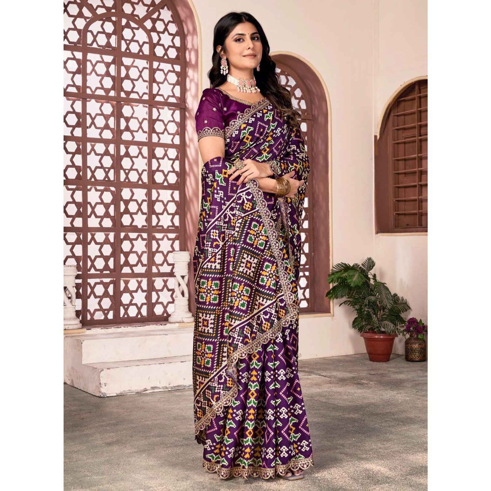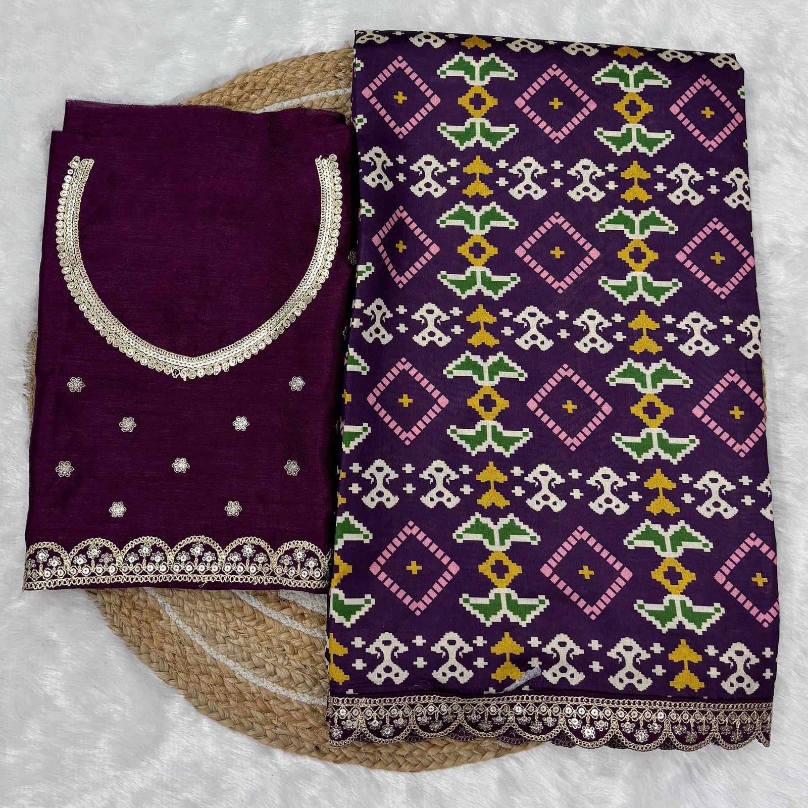 Be the first to review “Wine Printed Patola Tussar Silk Saree”