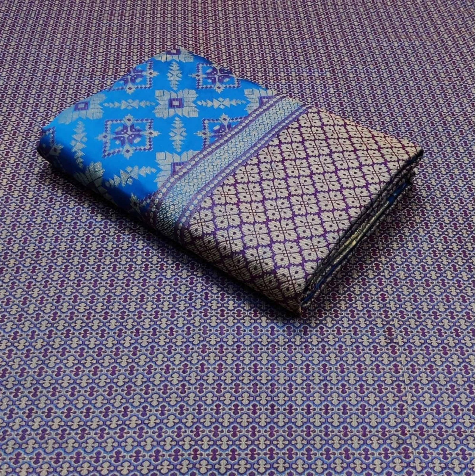 Royal Blue Silk Blend Saree Featuring Patola Prints and a Detailed Weaving Border